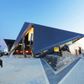 Completed in 2010, the AEC complex was designed by Australian company COX Architecture and has won several awards. Its striking glass and steel form was intended to be a contemporary structural work of art on the harbourside, with the angular facade and extensive glazing references to the crystalline molecular structures of earth. It comes alive like a glistening giant cut diamond, transformed by absorbing and reflecting light as people move around.