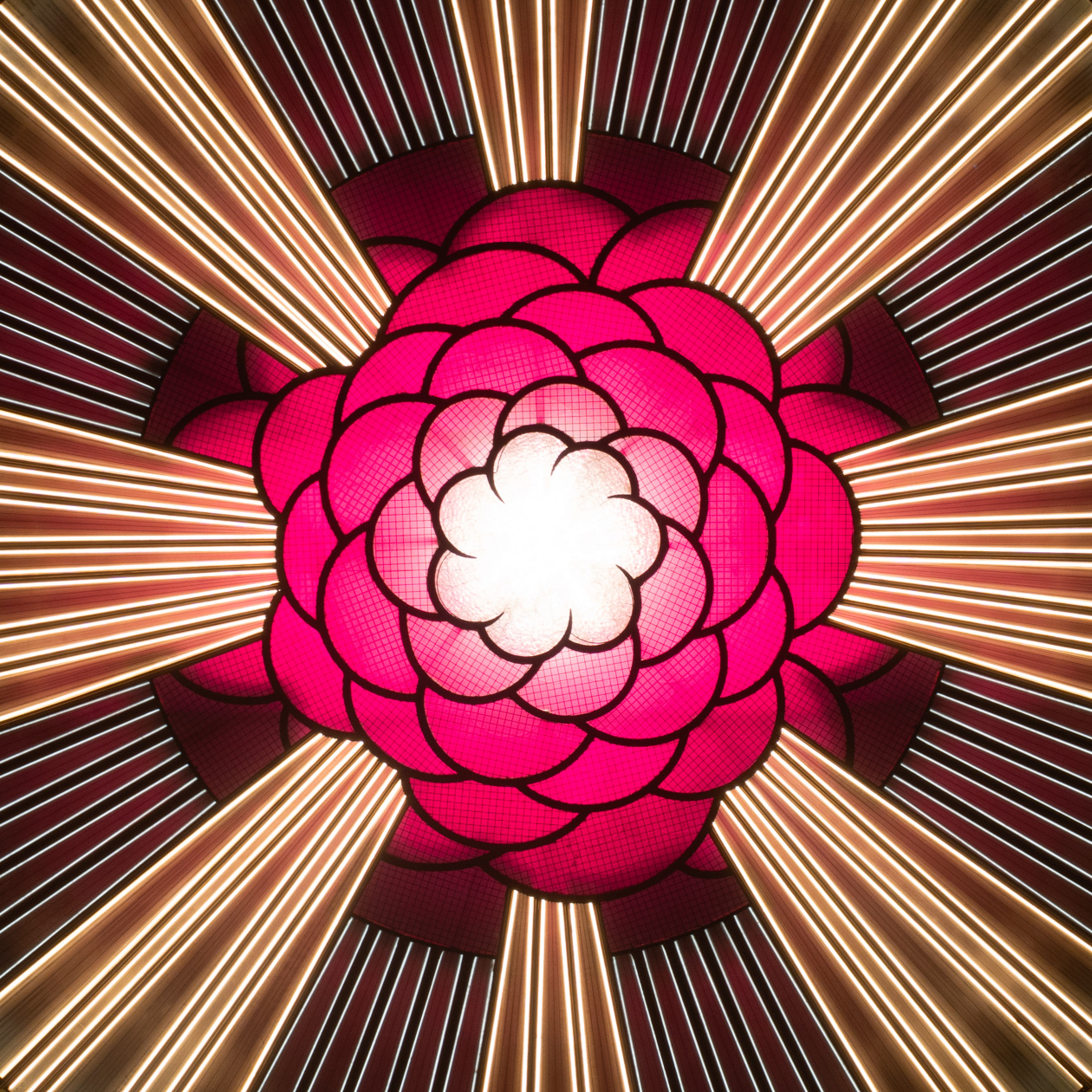 On his first visit to the theatre, Yann immediately saw the potential for transforming the auditorium’s impressive 35-metre diameter glass ceiling flower-like centrepiece into a magical ‘living and breathing’ light art feature, utilising illumination that is sustainable, practical, and beautiful.