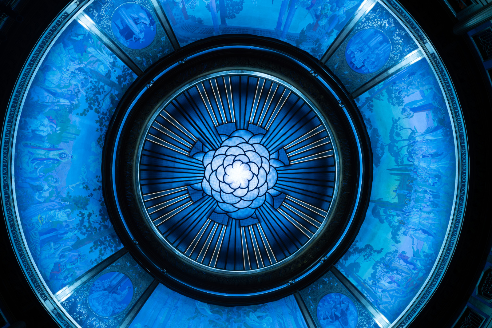 The 96 x Eminere2s are arranged in two rows of 48 around the top of the ceiling, where they are hidden from view by the lip of the glass, while evenly and smoothly lighting the paintings on the circular, scalloped ceiling above.